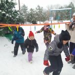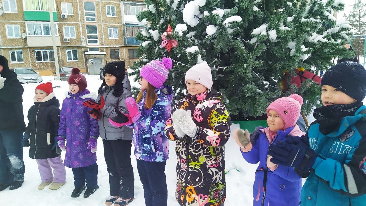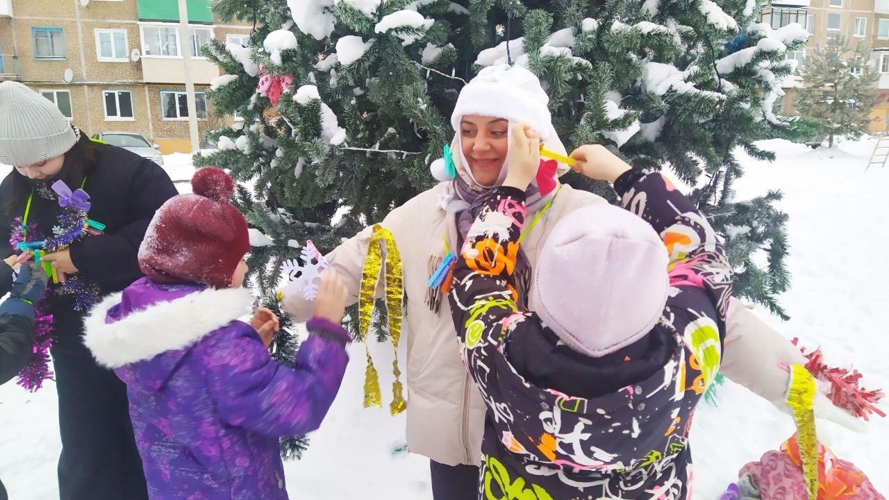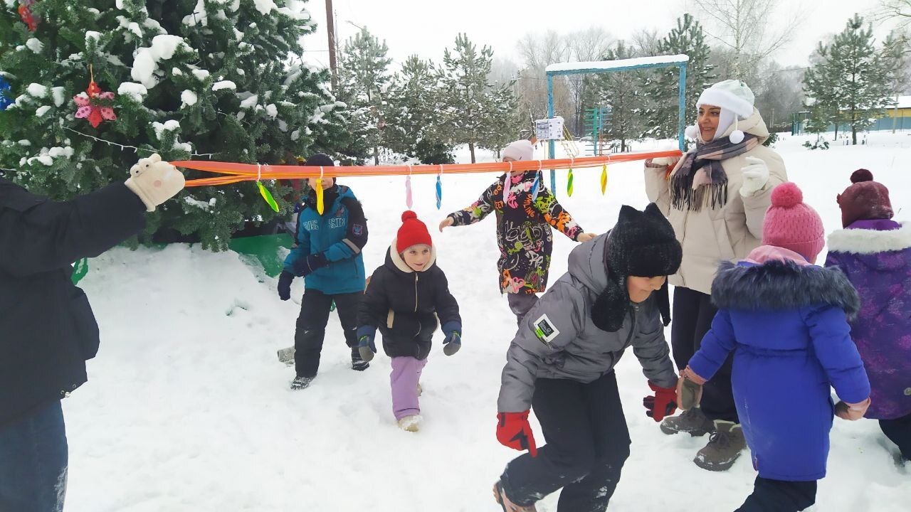 На площадке под наряженной красавицей елкой развернулся большой дружный хоровод. Здесь собрались дети всех возрастов, готовые встретить сказочного гостя и окунуться в праздничную атмосферу вместе с ним.